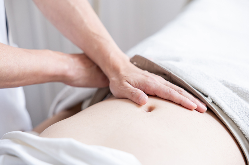 お腹全体およびおヘソを中心に、その左右上下の緊張・弛緩・冷え・熱・ざらつき・圧痛などを診せていただきます。